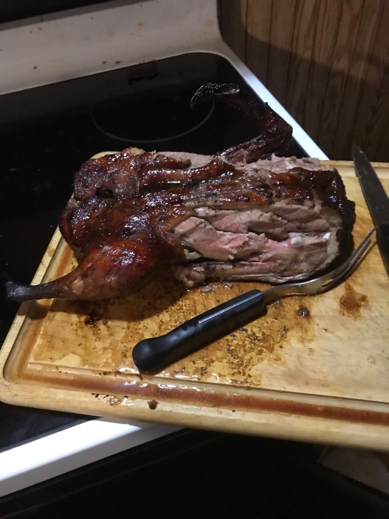 That I am a cook? Well, I am! Last night I tried to make Peking duck. It… was a disappointment. As you can see below, we picked at it awhile but the meat was tough and the skin spongy. A first failure. Trying again with homemade Macaroni and cheese w/Italian sausage. Will share the before and after a in a few!!