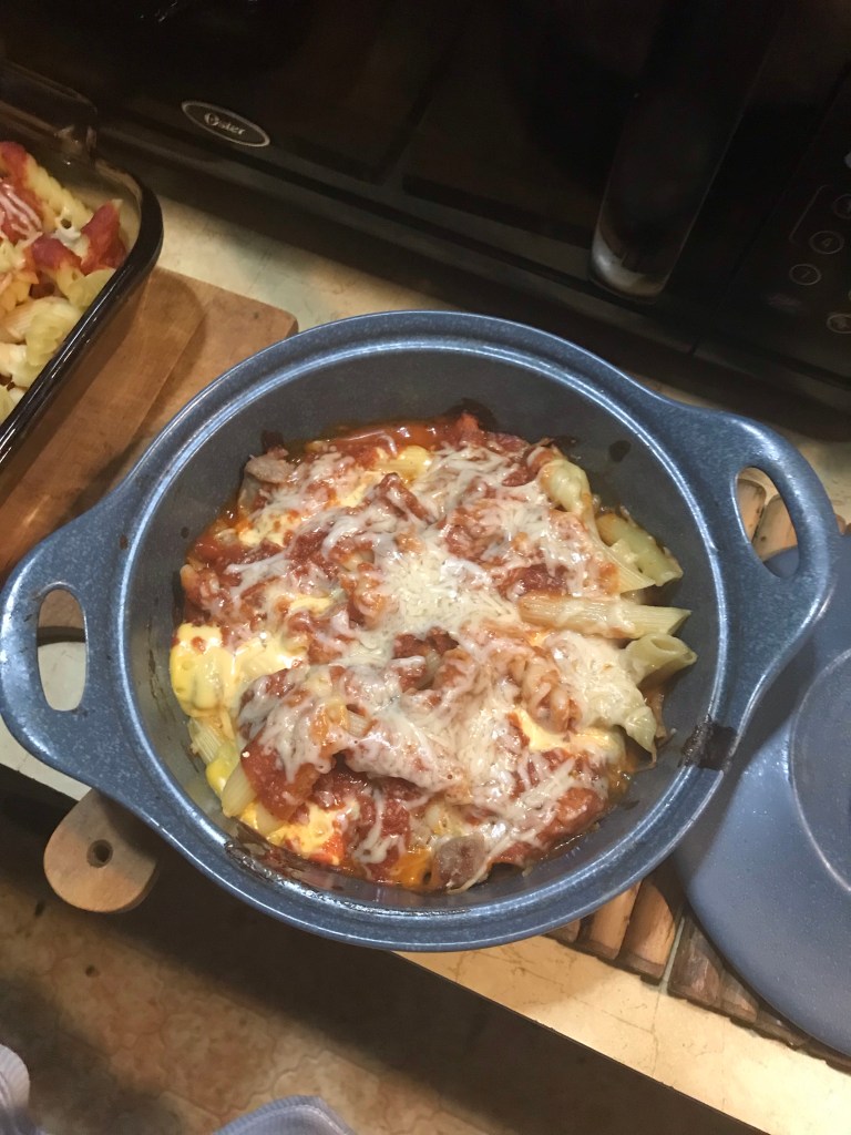 As promised, here’s my latest culinary concoction: family style Mac and cheese! The before: